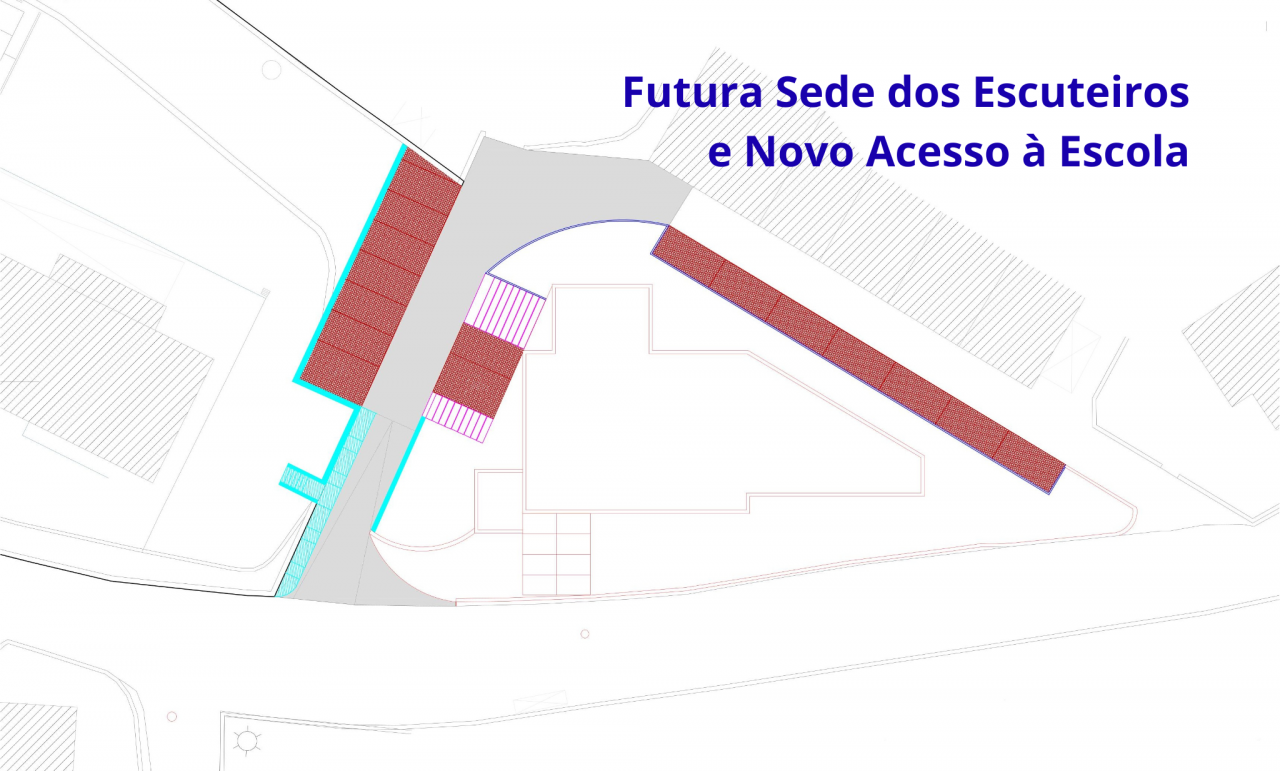Sendo que, nesta fase, está garantida a construção de todas as infraestruturas, assim como, será construído um novo acesso lateral à escola, a partir do terreno onde irá nascer o edifício acima indicado, de modo a garantir maior segurança e fluidez no acesso à escola.